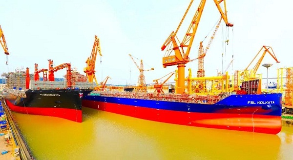 黄埔文冲双船同日出坞、一平台主体工程成型
