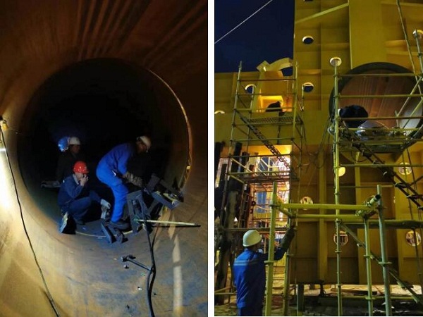 赶节点期间,项目团队主动放弃节假日休息,每天通宵轮流作业。一线工班和施工队人员更是不论白天黑夜,持续做好吊装分段,合拢口装配焊接等工作,为项目开展不断奋战。