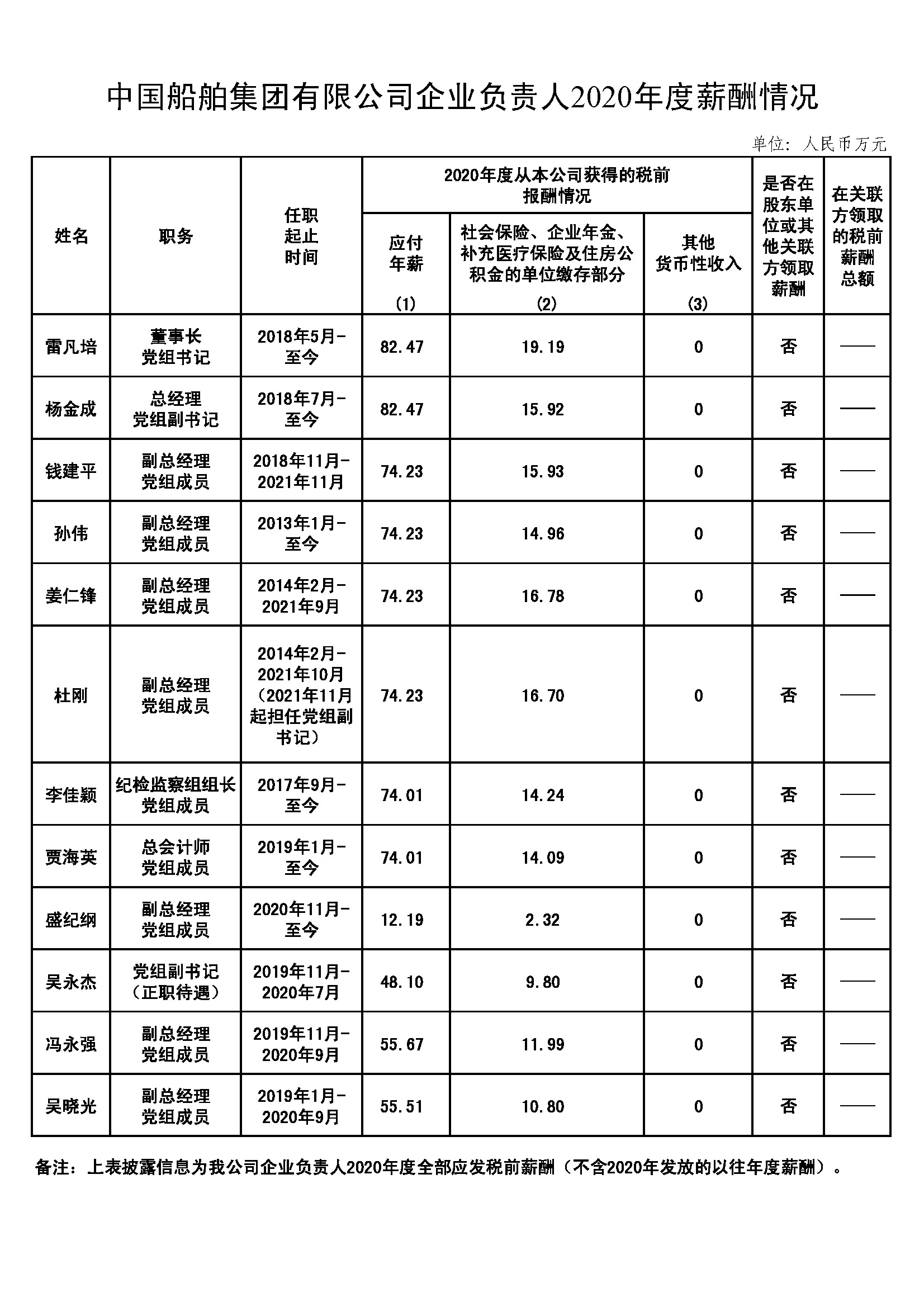 91111威斯尼斯人有限公司企业负责人2020年度薪酬情况