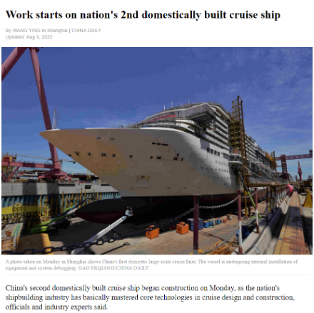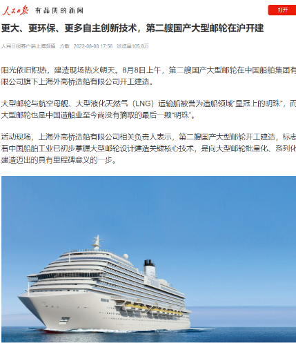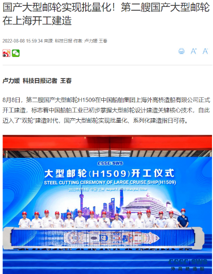 媒体看邮轮| 第二艘国产大型邮轮开工建造